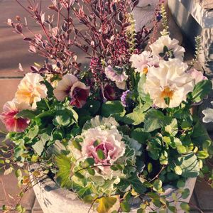 フリフリビオラ♡ シフォンピーチの寄せ植え✨ 葉ボタン フリリアージュ♡ 今朝はー3℃ この寄せ植えは大丈夫でした💠