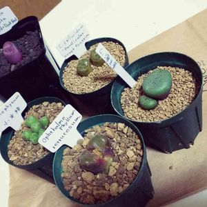 群仙園さんと行きつけの多肉屋さんの寿麗玉コラボコレクション(ง ˙ω˙)ว リトープスの中でも模様の種類が豊富で、我が家では三番目に数が多い子達です。 福来玉もこの子達の仲間なのですが、寄せ植えにしたので個々の名前は分からくなっちゃいました(ノ≧ڡ≦)☆多分、紫、緑、茶、赤が名前の前に付くだけだと思う。