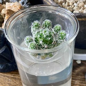 一昨日ダイソーでゲットして、昨日植え替えてさっさと外に出していた(カーポートの屋根の下)新入りサボテンたち、昨日の夜?今日の明け方?に雨がちょっと?結構?降リ込んだらしく濡れてましたw 屋根の下に入れてはいたんですけどね~まぁ玉翁以外は根の状態もかなり良かったし、サボテンはCAM型光合成で夜に湿度高い方が有利だからいっか… とりあえず30cmほど屋根の内側に移動させておきました。