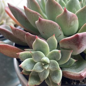 ハオルチア、ガステリア レディ。 ムチムチパンパンだったのが、元気なくなり、下葉が枯れてきた。よく見たら、子株が出てる。 さらによく見てたら、鉢を倒した!ほとんど根がなく、子株はポロポロとれてしまい、もったいないので、土にさしました。😅