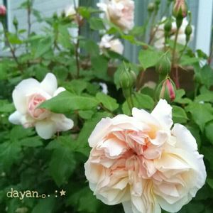 デプレア フルールジョーヌ🌹 こちらはオールドローズなのに結構咲いてくれます。😄💕 それに上品な良い香りがします😊 私のカバー画像になっています。 反対側からの📸ですが〜😄💕