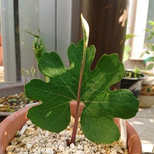 カナダケシの葉っぱは天狗さんのうちわだな🎵。芯の槍は花柄だよ❗。なんかカッコイイ‼️。