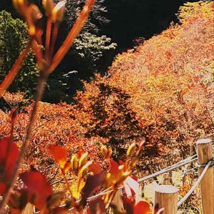 ④ フランス式階段工近くの牛伏寺に寄りました。 境内にも色とりどりの紅木々が 色鮮やかに紅葉していましたよ。