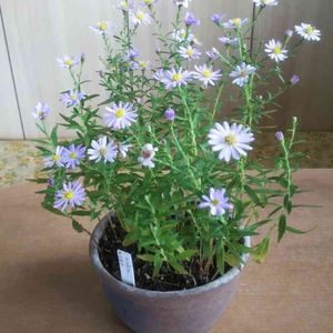 このアシズリノジギクは 私の所では🍀もう古いお友達です🌿🎵 四角いお皿の座布団にじっとおとなしく我慢して座っているので可哀想なので❗️ 今日は晴れ舞台に上げて観ました✨🎶🌿