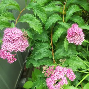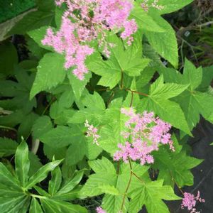 コシジシモツケソウ🌿🌸 いろいろなシモツケソウ🌿が🏠の狭い庭で仲良く咲いていますよ🎵花🌸よりも葉🍀のほうが目立ってしまいます🎶