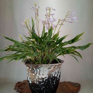 🌿コガラシギボウシ (ユリ科ギボウシ属) アキギボウシの園芸品種とされ小型のギボウシで葉が細長く、よじれるのが特徴的です 🌿 ようやく咲き出してくれました🌿🩷💜