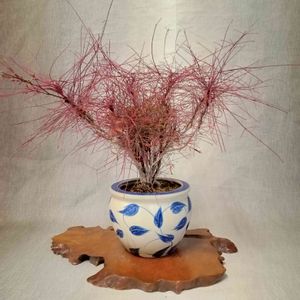 🌿瓦盛りハゼとリンドウ🌿 ハゼがいつもの年の様に色づいてくれません🌿💚🧡😥 暑さがずっと続き🥵 急に寒くなってしまい 色づくタイミングが分からなく成ってしまったようですね😅