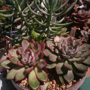 夜の・・多肉さん 美空鉾さん&花うらら 美空鉾・・しっかりと大きくなりました・・。 花うらら・・カイガラムシにやられた跡が残ってますが、しっかりと、縁は紅く頑張ってます❗
