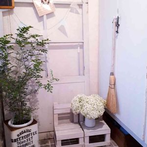 今日はなんだか寒かったな~ 今日は 玄関の中です お庭のアナベルを飾り 激安だったシマトネリコを飾ってみました🎵