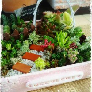 多肉、サボテン寄せ植え〜‼️ リメカン😅😅😅 少しずつやっては全然進まない〜‼️😅😅😅 汚しで完成する物も途中やり‼️😅😅😅