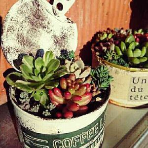 おはようございます🙋🍃 先日多肉な彼女のイベントでゲットしたリメカンにチョンパしたものを、さしました。日向ぼっこ😍🌱😍