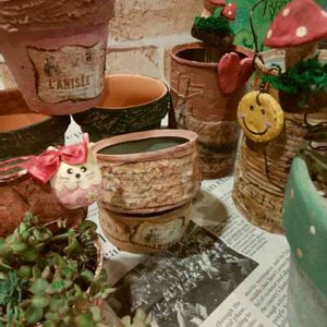 おはようございます🌞 いい天気♡♡ 最近多肉狩りに行けてなくて チョイストレスが💦💦 仕事が忙しく…😥疲れぎみ 夜な夜なネコ缶がたくさん転がってるので リメ缶*リメ鉢 塗り塗り🖌 粘土でチャーム☆キノコ🍄ピック♪♬♩♬♪♬♩♪♩♬作っちゃいました😁 暖かくなったてきたから ここにセタム入れ込みたいな~