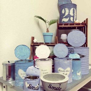 友達に缶を分けてもらったので 久々の缶塗りでーす いろんな方のリメ缶を参考にさせてもらって 可愛い 💗リメ缶ができました 😁