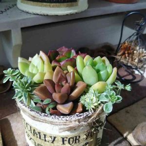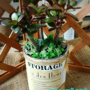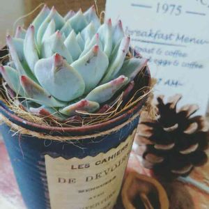 むちむち&ぷりぷりの可愛い子を濃い色リメ缶に植えましたぁ~🎶 なかなかいいじゃない~って自己満足😆