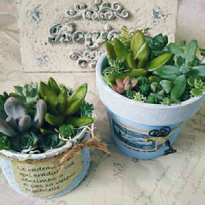 春色~リメ缶&リメ鉢❤ 水色バージョン🎶 寄せ植えしました~💠