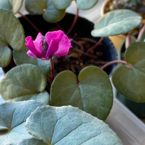 おはようございます🌸 去年花無しで購入した原種系シクラメンコウム シルバープリンスが咲き始めました🌱🌸😍 これは赤紫なのかな❓😅 シルバーで丸い葉っぱもお気に入り🌱😍