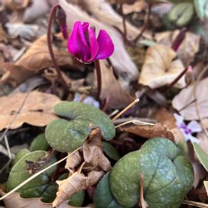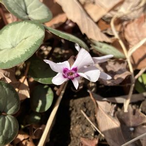原種シクラメンコウムがひっそりこっそり咲いていました。 小さっ!でも可愛い顔😍していました。