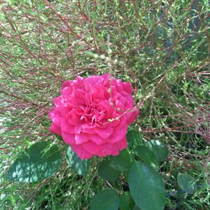 【ミニバラ】 ごめんよ~コキアが邪魔だよね😢 もう少し待ってね秋になり🍁コキアが紅葉し終わったらコキアを抜いて広くしてあげるからね。🙏