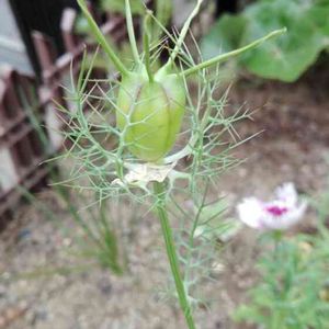 太っちょエイリアンが成長中(上の方) ( ̄O ̄) ニゲラの種やっぱりおもしろーい