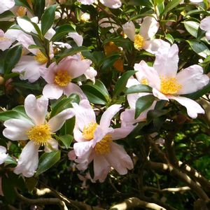 サザンカ(山茶花)が咲いていました。 この花は割と大きな木に咲いた花です💕 色は薄いピンク色ですが、サザンカにはいろいろな色の花があります🎶 次回は違う色の花を捜します😃