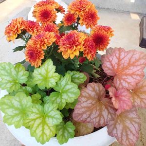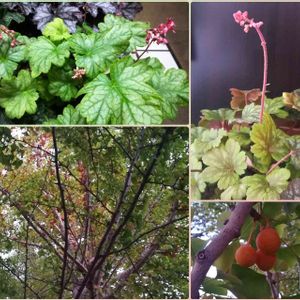 ナンキンハゼとヒューケラドルチェ2種類です。 ナンキンハゼは、庭に生えてきた子を鉢で育ててます。 まだ小さいのに紅葉してめちゃめちゃ可愛いです♡🌿🎁🐧♡♡♡
