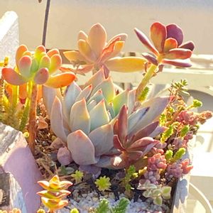先程のセグリットピーチピーチ🍑はここにおります😉✨ パステルだけはお水少なすぎて下葉がカリカリで🤣💦 パキフィツムさん、お名前は? フーケリー? 寄せ直しもしてませんが 紅葉してくれるかなー? レッドベルベットはまだ本気を出してないなー😘