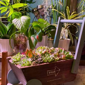 先程の子たちは去年ドームでカインズ×GreenSnapのワークショップで作った乳母車に寄せて 植物育成ライトを当てております🥰💕💕