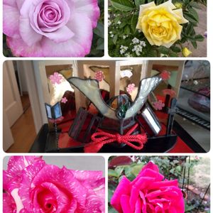 こんばんは😃🌃 今日は端午の節句ですね🎏 教室で作ったステンドグラスの兜 屏風が無かったので、ひな祭りの自作の屏風を使い 桜の模様ですけど、まぁいっか😅 薔薇は 🌹ライラックビューティ 🌹モダンタイムス 🌹パパメイアン 🌹名前のわからない黄色のスタンダードのミニバラ