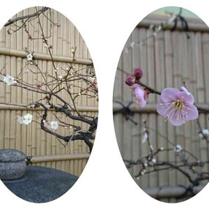 職場のお庭の梅がほころびはじめました 左は白 右はほんのりピンクなのですが 実は同じ1本の木の枝違いなんです 去年もそうでした 梅って同じ木に色違いの花が咲くものなの?