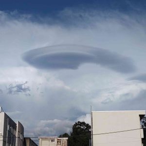🏷土曜はお空の発表会 参加します 「あれは何?」 一瞬UFOかと思ってしまいましたわ 昨日夕方 郵便局まで行った帰り道 それは唐突に目の前の空に 浮かんでおりました 雲の名前 あるのかなぁ? 2023年8月4日 17:05 p