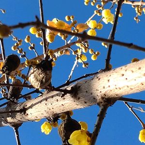今日のお花 実家の庭のロウバイ 住む人の なくて四度めの初春の 蝋梅高く 香 青に染むる by p 自宅のWiーFiが絶不調でエラーの嵐なので GS満足に楽しめておりません 諸々失礼お許しを… p