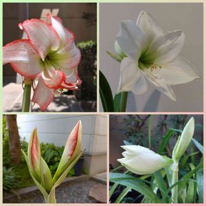 うちのアマリリスの記録に… 毎年玄関先の鉢で花を咲かせる 白に朱色の模様のものと 今年庭の片隅で忘れ去られていた鉢を 見付けた純白のアマリリスと それぞれの蕾と開花した時のpicです 白い方の鉢をpが見付けておばあちゃんに 知らせてしまったばっかりに… その美しさ故に薄暗い室内(玄関)に 取り込まれてしまったアマリリスは 2つ目のお花を開花させる事なく 現在は茎だけになってまた庭へ放置されました 来年に向けてpがしっかりお水をあげるからね また庭の片隅へ追いやられる前に 確保して来なくっちゃと 強く思うpなのでありました 庭でお花を愛でるには色んな戦略が必要です p