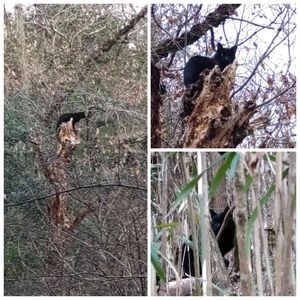🏷ニャンニャン祭り ワイルド編 山にお住まいのクロさんご兄弟です と言いつつ初めてお会いしたので 性別 詳細何もわかりません ひとりは高い木の上で ひとりは藪の中から… 侵入者を静観しておられました p