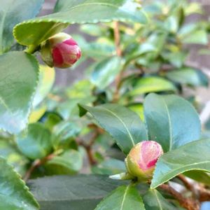 🏷金曜日の蕾たち ⬅️庭の山茶花に蕾を見付けたのが11月8日 ↗️が昨日で ↘️が今朝です 地味~だった庭がぱっと華やぎますね☺️ ありがとう(о´∀`о)❣️ p