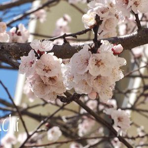 今日もおつかれさまでした… 近くの小学校の校舎前に、もう桜が咲いてる🌸🌸🌸 引き寄せられて行ってよく見ると、桜ではなく「アンズ」でした。 桜より梅に近い感じでした💮💮💮 青空と校舎と…