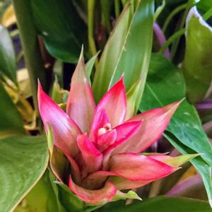 こんにちは~💮 今日のお花 「グズマニア」 職場内の花屋さんで… 大きくて立派な鉢は売れてしまって… 休憩中です😊🍀👍