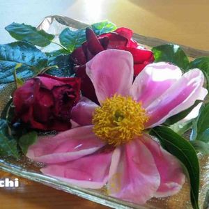 今日もおつかれさまでした🍀 きのうとの気温差が大きすぎて暑い日でしたが職場の花壇のお花、仕上げてきましたよ👍 仕事中、スーパーの産直花売り場に「シャクヤク」が何と100円で出てるのを😳この私が見逃す訳がなく… 仕事終わってから買ってきました~😊🍀🌺 3本入ってましたよ👍 花瓶に活けて、開ききった花をひとつ切ってガラスの器に… 先日ご近所さんにいただいた「薔薇」の花と一緒に✨✨✨ 光と水で演出しました~🍀✨✨👍😊 100円で2度美味しい ダイニングテーブルに飾ったまま夕食を… 『この花は食用』(息子)『今日のメインディッシュやで~』(私)