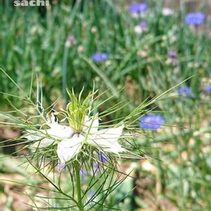 おはようございます🍀 今日のお花「ニゲラ」 去年はじめてニゲラを見た場所に「ヤグルマギク」と「ネギ坊主」と一緒に咲いててくれました~🍀✨✨👍😊 私の庭にも種を蒔いたんですが、なぜか発芽しませんでした😅