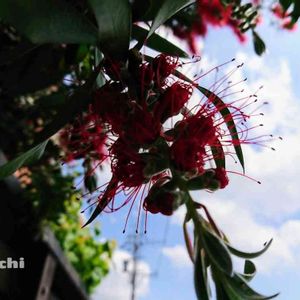 今日もおつかれさまでした… 今日の外仕事はえらかった〰️😅 クタクタです… 今日の仕事道で… 大きな「ブラシの木」に赤い花がモリモリ~💮😊🍀 敢えてクルクルの花を撮りました✨✨✨