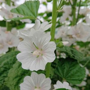 今日もおつかれさまでした。 帰り道の畑で見た白い 「タチアオイ」… ではなく「ゼニアオイ」でした…👍😊❇️