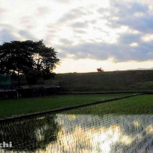 今日もおつかれさまでした… 夕方の散歩道… 大好きな「山桜」の木と水田の競演✨✨❇️ 特別出演してくれたのは郵便屋さんかな⁉️ おつかれさま~💮😊 そういえば今日、コロナ給付金の申請書が届きました。