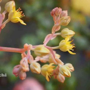 おはようございます🍀 私の庭の多肉ちゃんがまた花を咲かせてくれました😊😊😊 元気で冬を越して産卵を始めたメダカの鉢の「ホテイアオイ」と競演…✨😊🍀