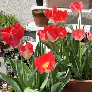今日、咲いたチューリップはサンキャッチャーとジュディスレイスター🌷 風が強くて、折れないか心配です😱 サンキャッチャーは成育が良くなくて、4球のうち咲くのは、この1輪だけになるかも・・