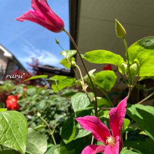 クレマチス プリンセスダイアナ 咲き始めてます♪ 上のほうで上手く写真撮れない💦