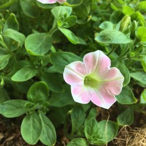 サフィニアももいろハートちゃんが咲きました💕 なんか色薄いしハートになってないっぽいけど、やさしい感じでこれもまた良し(*μ_μ)