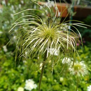 今日の庭から 今日も真夏日になりそうです。 1)今日のお花 オキナグサ 花後です。 白花なんですが、咲いてるところpic撮りそこねていたら、いつの間にかお爺さんに🤭 2)ピエールさんです。 このくらいの開き加減が好みです。 3)フレンチラベンダー うさ耳が長い🙆 4)紫蘭咲いてます。 5)こぼれ種からのジギタリス。 思ったところには咲いてくれません😅