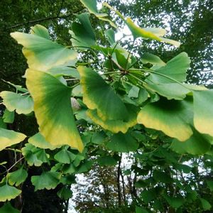 公園の銀杏の木 葉が色づき始め ちょっと早いですよね