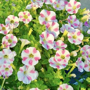 おはようございます☁️ サフィニアアート ももいろハート🍑 梅雨空の下、元気に咲いてくれています♩ ペチュニア類は昔から育てるの苦手なんですが、沢山分岐するので、私でも育てやすいです☺️ これでもピンチし過ぎたり、やらかしているところがあります…😅でもこんなに可愛く咲いてくれてありがとう💕 一斉に咲かせるのって難しいですね… 今日も良い一日を*ˊᵕˋ)੭