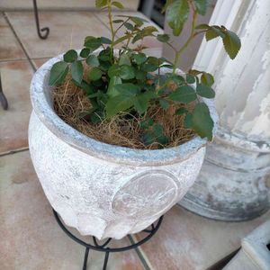 ハチさんの鉢にミニバラを植えてみました ·͜· 咲くのが楽しみです♡