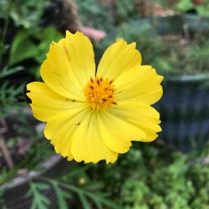 種をまいても出て来てくれない黄色いコスモス🌼 沢山咲かせて見たいけれど今年も2本だけ咲きました 土が合わないのかしら😊